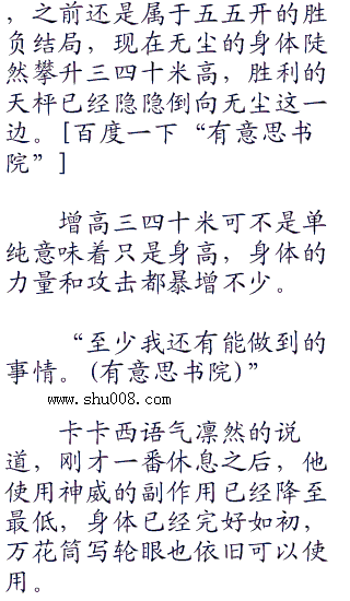 如此短暂的距离根本无法防御,而且须佐能乎的移动能力也不灵巧,所以当那小型的尾兽玉喷向无尘的刹那,便已经注定无尘只能硬抗下这道致命的攻击。