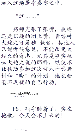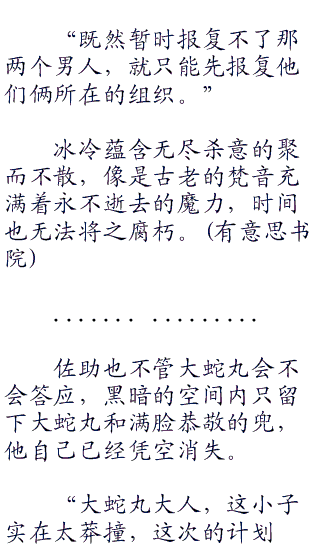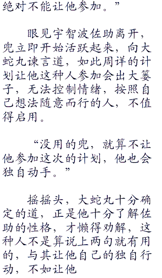大蛇丸倒也是了解佐助的习性,并没有以一副命令的口气,面庞带着笑容,而是以一种商量的语气和佐助说道。