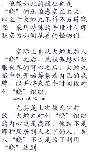 想起大蛇丸可恨的面庞,迪达拉冷酷的直言不讳,捉拿尾兽只是任务之一,剩下的第二项任务就是解决大蛇丸这个讨厌令人作呕的叛徒。