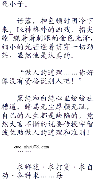 白绝错愕的看着口无遮拦的佐助,眼里闪过讥讽之色,真不晓得这家伙是太过自大,还是太自信自己的实力,在他眼里,佐助这番言辞无非是“零九零”自取其辱。