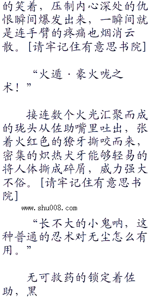 眼睛骤然缩了缩,佐助毫不迟疑的选择侧身躲开,抽身之际,左臂却是蓦然一疼,脸色顿时苍白起来,面庞的血色被吞噬,十分的无力。