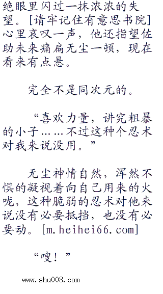 眼见佐助如临大敌的样子,无尘嗤笑连连,心里暗道:“有用吗……今天就让你这个始终跟着大蛇丸的乡巴佬涨涨见识。”