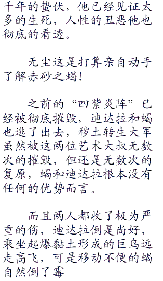 面无表情的看着恼羞成怒的大蛇丸,无尘浑不在意的刺激着他,嘴角的轻蔑的笑容更是让大蛇丸有种把无尘碎尸万段的冲动。