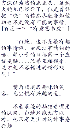 眼见大蛇兜的身影迅速的溃散,无尘嘴角扬起蔑视的笑容,小角色始终是小角色,这种不值一提的小人物将来要么苟延残喘的活下去,要么就是直接被抹除。