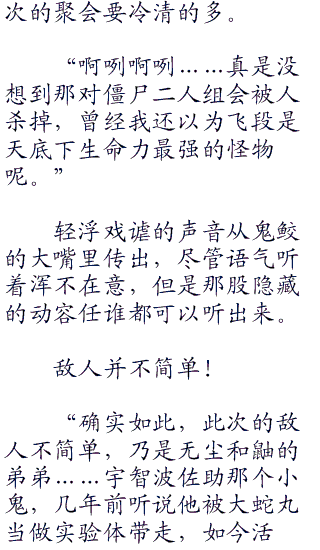 无尘下了逐客令,大蛇兜同样懒得多留此地,眼前这具杀神喜怒无常,没有人知道他内心到底想着什么,也不知道是敌是友的不靠谱盟友。