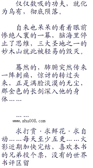 目光阴晴不定的注视着无尘,自来也心中蓦然一凉,他突然感觉自己这一生的挚友,无论是大蛇丸还是无尘都纷纷离他而去,也许真的是他自己错了,精神一时间也恍惚起来……