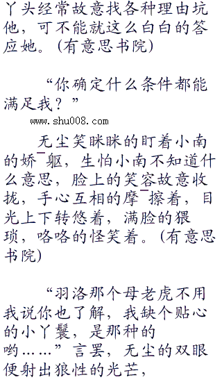 优哉悠哉的迈着步伐回家,无尘正欲好好安慰羽洛的时候,不速之客立即堵到门口,凝视着笑眯眯的无尘,气不打一处来。