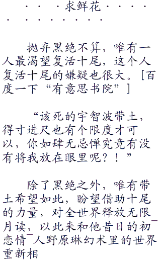 萧索落寞的叹了口气,小南自嘲的苦笑道,当初若不是她大意被山椒鱼半藏所擒获,这一切的一切都不会发生,弥彦也不会死。