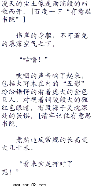 蓦然的,沉稳有力的暴喝响彻云霄,伴随着强烈的查克拉波动,地面开始凹陷下去,尤其是无尘须佐能乎脚踩着的土地一瞬间崩溃,掉进深坑里。