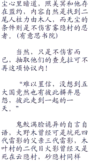 无尘只是单纯的指望佐助去偷袭木叶,至于九尾,他可不认为佐助有能力击败,现在的漩涡鸣人今非昔比,完全不是佐助能比的。