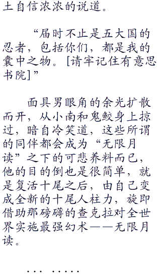 “本来是指望他能袭击木叶的,没想到连九尾鸣人他也顺带捎上。”