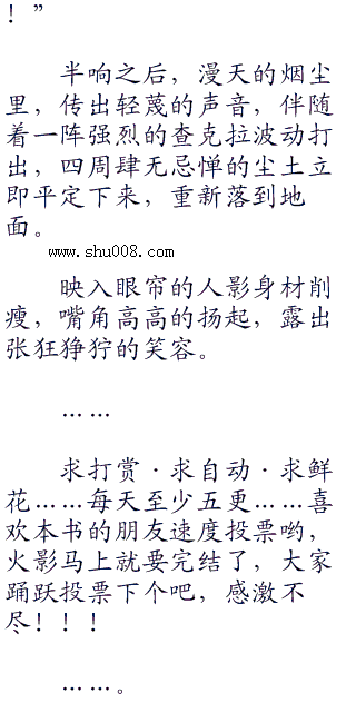 随着无尘的话音落下没有多久,身后就猛然传来如神如魔的查克拉波动,能听见类似神兽嘶鸣的嘹亮声音。