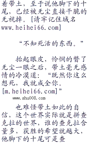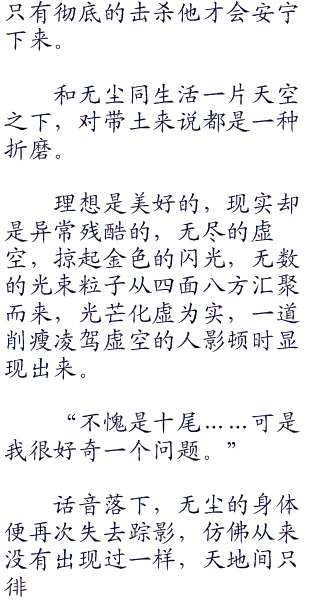 愤怒的仰天怒吼响彻云霄,轰鸣的声音即使无尘也是一阵耳晕目眩,狂暴查克拉产生的飓风,给人的感觉就像是活在十几级龙卷风的风眼里,噤若寒蝉,内心充满绝望,别说和这夸张的怪物游斗,就是反抗之心都无法升起。