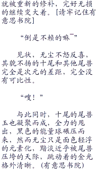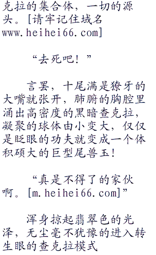 怪物嘴边带着类似口水般的唾~液,格外的恶心,纵使是无尘也不禁一阵作呕,暗暗拿着传说中的卯之女神和眼前的十尾对比,神色不由的僵化,尤其是十尾那掉落的口涎更是让无尘浑身恶寒。