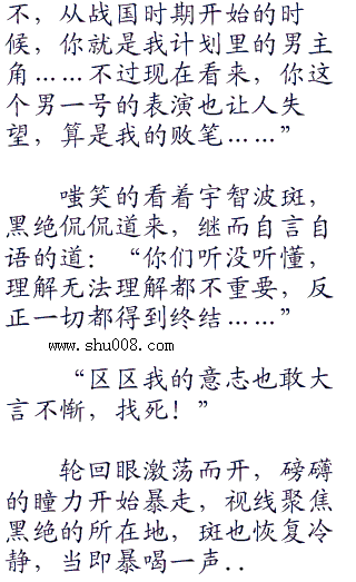 然而黑绝直接无视宇智波斑的这番话,接下来的一句话却是让宇智波斑直接吐血,浑身的杀气开始不受控制的暴走。