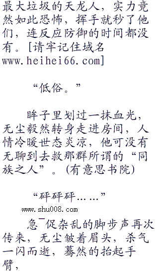 无尘所在的房间里,血腥味扑鼻,往后看去,不少残肢断臂清晰可见,瞳孔惊恐茫然,显然是连反应过来都没有就被当场残忍分尸。