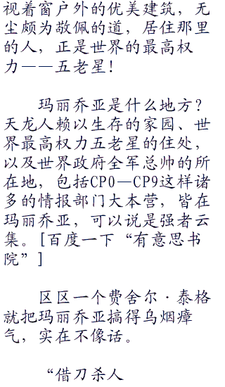 纵使有政府里的人员保护着这些蛀虫,也有天龙人倒在血泊里。