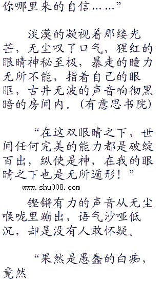 闻言,嘴角陡然上扬,无尘瞳孔急剧变化,露出猩红色的五角星眼睛,射出来的光芒危险无比,露出妖异的邪笑。