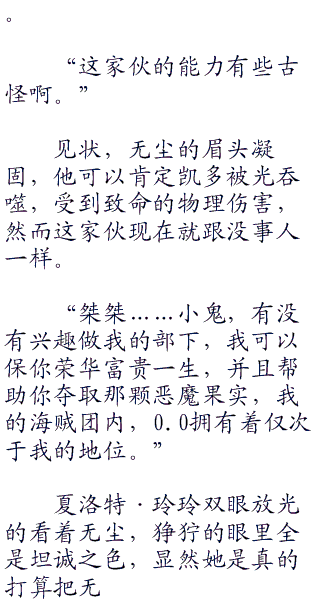 一瞬间,无尘的身体跨越重重空间,如同幽灵般的出现在石桌面前,正要伸手去拿自己家的恶魔果实的时候,擎天的黑影却是从天而降。