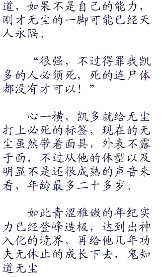 紧捏着水桶般大小的拳头,凯多鼻孔里喘出来的气都冒着寒意,足以压垮人的意志的磅礴杀气化作飓风的向着无尘肆虐而去。