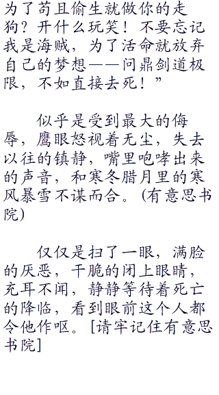鹰眼苦涩的自嘲笑道,语气里透着洒然,可见他并不畏惧生死,踏上剑道那一刻起,也就意味着鹰眼已经把生死置之度外。