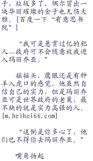 想起天龙人不堪入耳的事迹,饶是以鹰眼的定性也是满脸怪异,眼前这个实力空前绝后的家伙竟然是天龙人,世人对那群特殊的人称呼可是最大的垃圾。