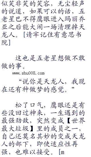 闻言,鹰眼到是哑口无言,眼前的无尘就是最好的例