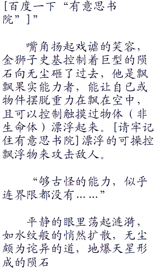 金狮子史基狰狞的面庞始终保持着淡定,甚至嘴角还悠哉的吐着烟圈,忽然不惧的看着砸过来的陨石,嘴角的轻蔑显而易见。