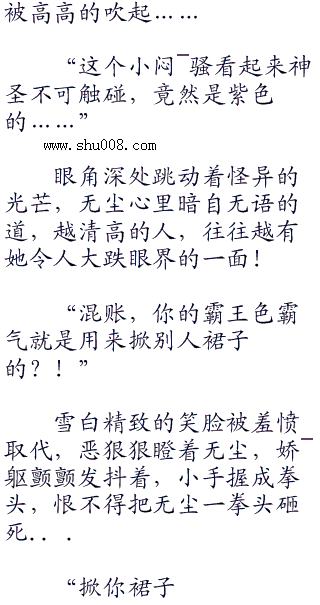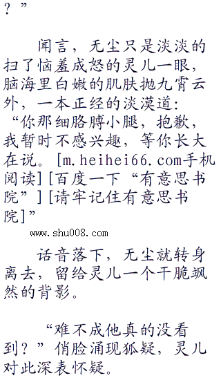 漆黑如墨的眸子掠起转瞬即逝的戏谑,打量着无尘的面孔,灵儿面色如常,只是声音里多了些许调侃捉弄的意思。
