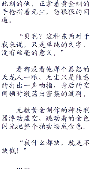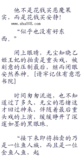 合上介绍拍卖品的清单,无尘不由暗叹世事无常,一阶鱼人岛的王妃却被抓来做奴隶,命运果然是多变离奇的。