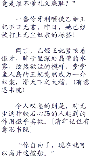 乙姬王妃自然也是无尘的船上休息,知晓他是何等无耻之后,乙姬王妃半夜都没睡,直到第二天方才如释重负的松口气,