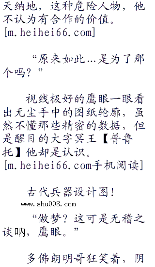 不着痕迹的打量着面无表情的无尘,映入眼帘的他认真观察着废旧的图纸,鹰眼内心疑惑至极,多佛朗明哥的野心吞