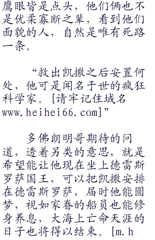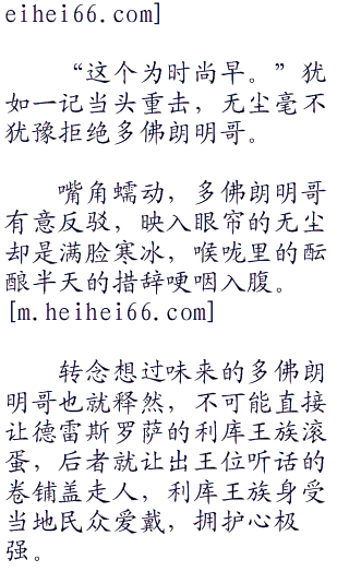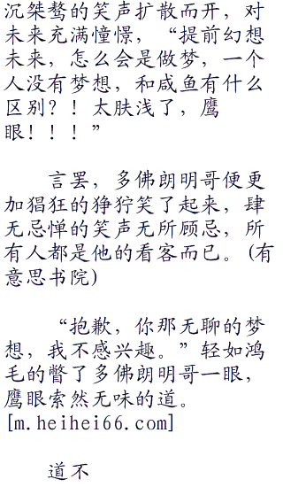 “现在还是白天,离上chuang睡觉还早,没有到做梦的时候。”抬起眼皮,嘲讽着陷入狂想里的多佛朗明哥,鹰眼语气淡如秋水。