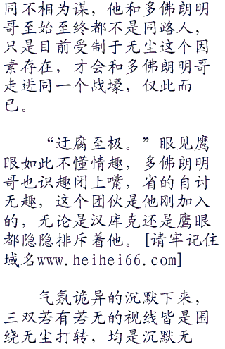 忽然觉得未来的梦想可能化为现实,多佛朗明哥一时间也是眉飞色舞,甚至连无尘和沉默无言的鹰眼都被他遗忘到九霄云外,整个世界都变成他的舞台。
