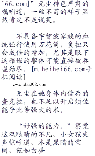 黑暗的空间如同无形的外衣遮住少女的容颜,无尘那变态的视觉能力观察下,吹弹可破的绝世容颜还是倒映漆黑的眼珠子里。