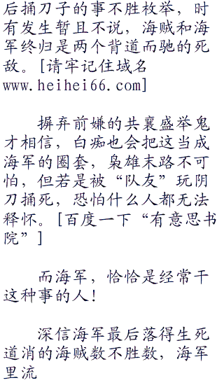 这个年代,海军就是狡猾如鼠的代名词,曾经愿意金盆洗手,结果到头来都被海军无赖抹杀的海贼多如过江之鲫,数量多不胜数。