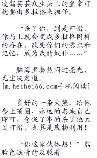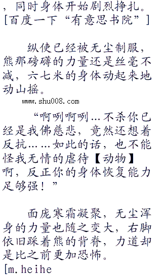 熊疯狂的瞪着无尘,凶残恶煞的模样,恨不得把他连人带骨吞掉,刺骨的寒气顺着浑身亿万毛孔溢了出来。
