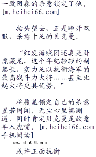 贝克曼面无表情的脸颊出现松动,眼底闪过隐晦的杀意,纵使转瞬即逝,还是被无尘感知察觉到。