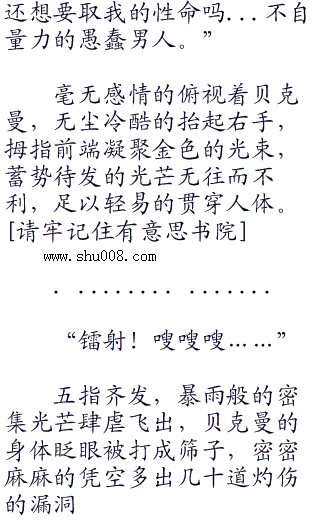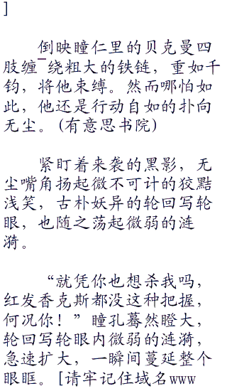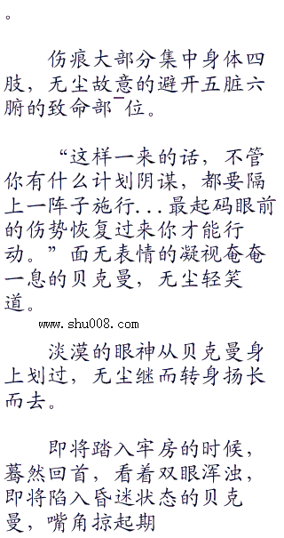 俯视不为所动的贝克曼,无尘神色继而阴沉如水,双眼射出逼人的寒气:“不过现在可以肯定,如今被套上项圈的你,是我的猎物!”