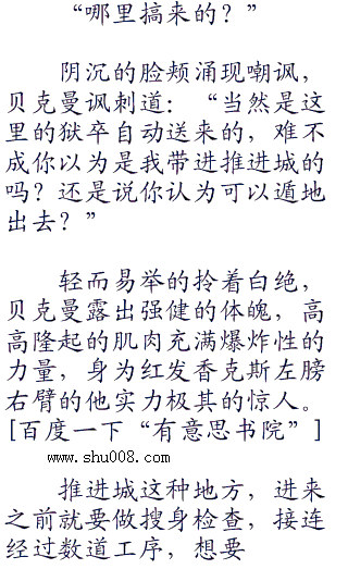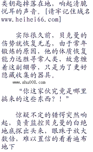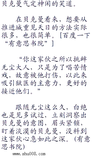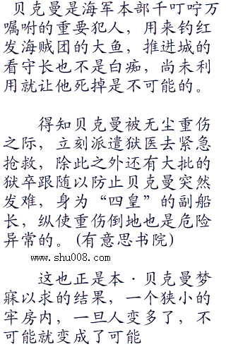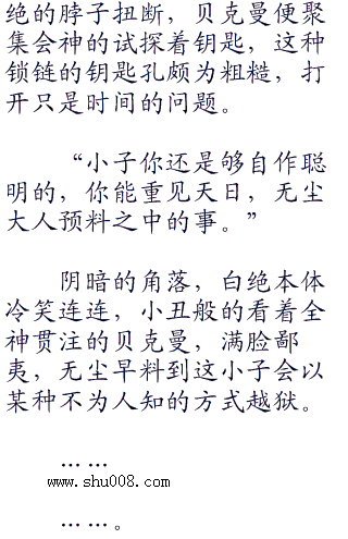 黑暗的牢房内,贝克曼满脸的遐想,眼神有些灰暗空洞,似乎想象着无尘知道自己成功越狱后是何种脸色铁青的表情。