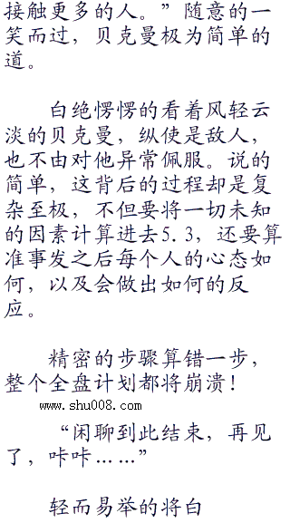 “为自己真的能掌控一切?不知道我逃出去后,自诩无所不能的你,会是何种表情.真是令“六三七”人期待。”