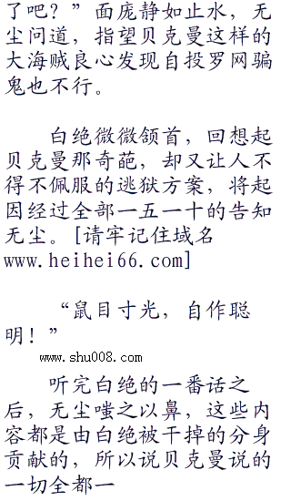 倒不是白绝看不起贝克曼,只是觉得这家伙的想法太过可笑,几个月前的时候,他的身体已经被无尘动了手脚,这小子到现在恐怕也没察觉,他也那个实力察觉无尘究竟动了什么隐秘的手脚。