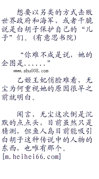 摇摇头,无尘暗叹乙姬王妃的想法可笑天真,想要加入世界政府,得到庇护,却又暗地里和白胡子结