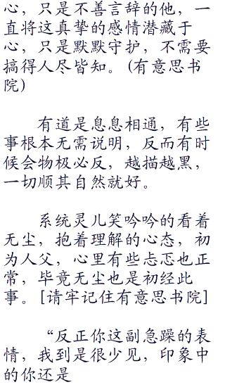 人非草木,孰能无情,尽管无尘性子异常冷淡,也不是不通人情世事的顽石,对于自己人他始终保持着关