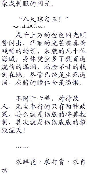 脸颊勾勒出妖异的笑容,无尘的瞬间也消失不见,化作金色光束呼啸而出,径直锁定前方的几道流窜的海贼。