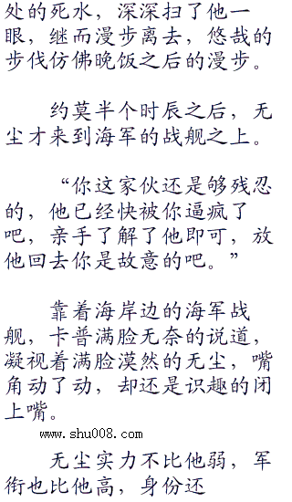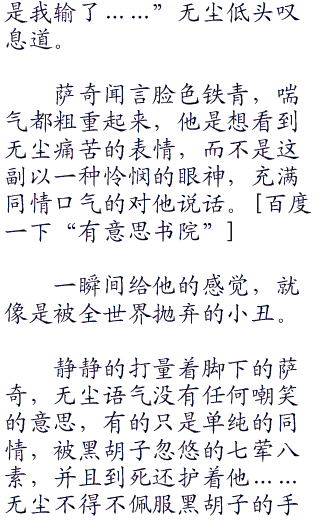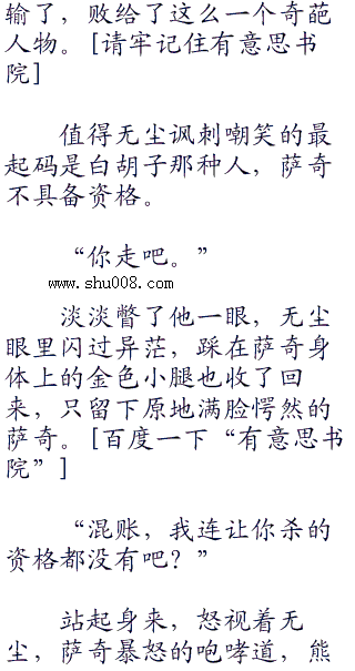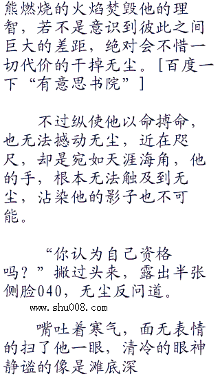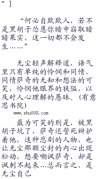 浑身充斥着与世隔绝的气息,萨奇不禁茫然,他没有从无尘身上看到人类的影子,不以物悲不以物喜,清澈的眼睛里唯有亘古不变的冷漠。