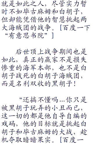 “黑胡子?你说的是帝奇吧,抱歉,让你失望了,我已经让他提前和老爹会和了!”