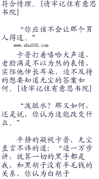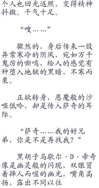 “你啊…说实话,你这种人暴戾的时候,时常流露善良的一面,展现邪恶的时候,却又有着别具一格的正义……真是个矛盾至极的男人。”苦笑以对,卡普摇头感慨道。