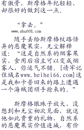 “你叫斯摩格?”瞥了他一眼,无尘不动声色问道。