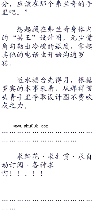 推荐好友一本神书:【火凤凰之嗜战雷神】,是个软妹子写的哦,个人感觉还不错,喜欢的朋友去看看,不妨收藏一下,举手之劳罢了,感激不尽!!!
